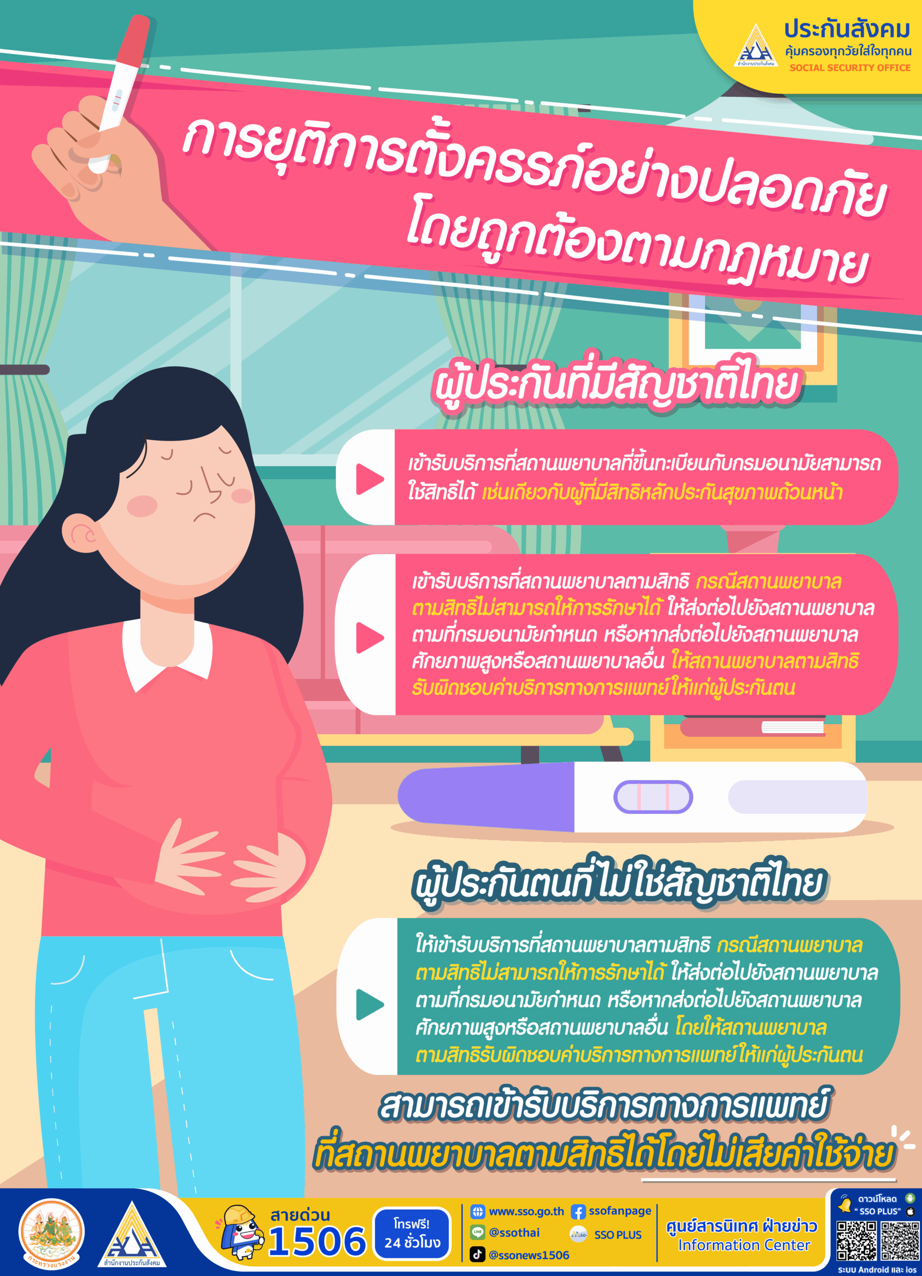 เมื่อวันที่ 23 มิถุนายน นางมารศรี ใจรังษี เลขาธิการสำนักงานประกันสังคม (สปส.) แจ้งข้อมูลว่า สปส.เล็งเห็นความสำคัญของการเข้าถึงบริการทางการแพทย์ที่มีคุณภาพแก่ผู้ประกันตนได้อย่างทั่วถึง โดยได้จัดให้มีสถานพยาบาลทั้งในรูปแบบสถานพยาบาลหลักคู่สัญญา ร่วมกับสถานพยาบาลอื่นที่เป็นการรักษาเฉพาะทาง ทั้งนี้ นอกจากการดูแลรักษาโรค เพื่อรักษาความเจ็บป่วยของผู้ประกันตนแล้ว สปส.ยังให้ความใส่ใจในเรื่องสิทธิผู้ประกันตนหญิงที่ท้องไม่พร้อม และก็ต้องการยุติการตั้งครรภ์อย่างปลอดภัย สามารถเข้ารับบริการทางการแพทย์ที่สถานพยาบาลตามสิทธิได้โดยไม่เสียค่าใช้จ่าย ซึ่งถือเป็นสิทธิประโยชน์กรณีเจ็บป่วยที่ผู้ประกันตนสามารถเข้ารับบริการยุติการตั้งครรภ์ได้ ตามหลักเกณฑ์ข้อบังคับของแพทยสภา ว่าด้วยหลักเกณฑ์เกี่ยวกับการยุติการตั้งครรภ์ทางการแพทย์ของผู้ประกอบวิชาชีพเวชกรรมตามมาตรา 305 แห่งประมวลกฎหมายอาญา พ.ศ.2564